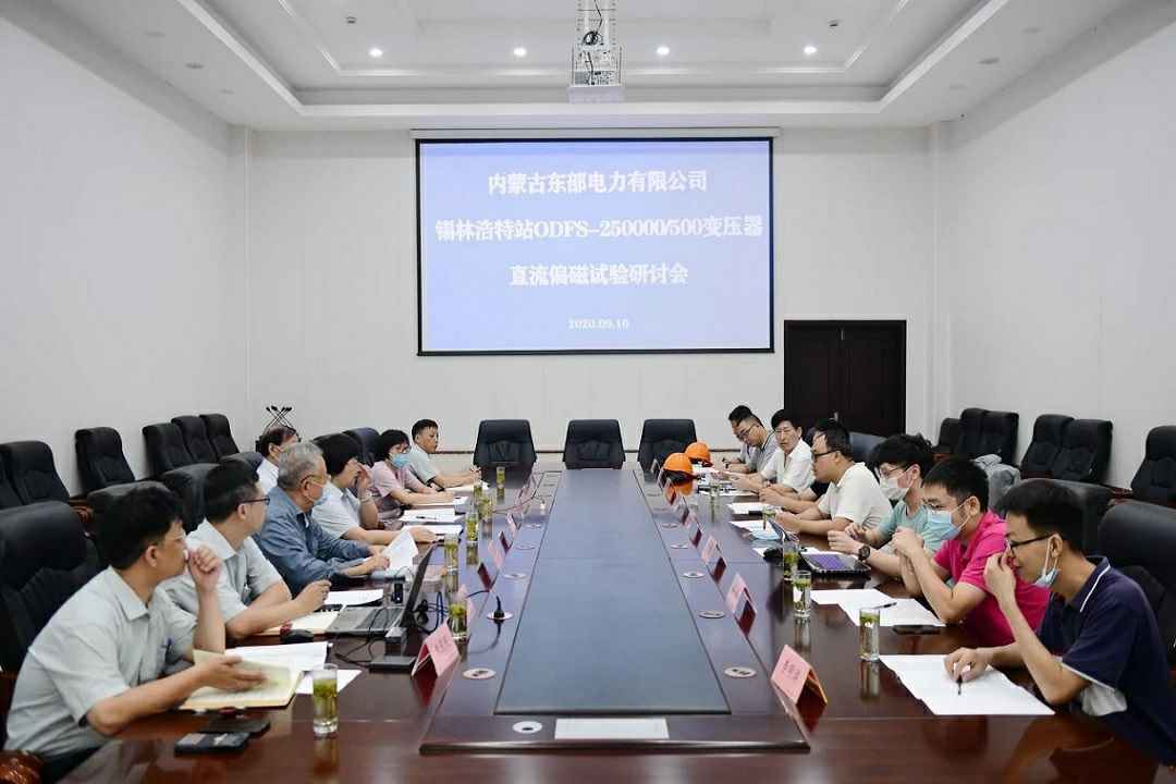 9月10日,国网蒙东锡林浩特ODFSZ-250000/500变压器直流偏磁试验方案研讨会在星空官方站网站登录入口-星空online(中国)召开。来自上海交通大学、华北电力大学、中国电科院、国网电科院、湖北电科院、国网蒙东电力设备部、国网蒙东检修星空官方站网站登录入口-星空online(中国)、四川启明星装备星空官方站网站登录入口-星空online(中国)和我司的相关专家参加了本次研讨会。